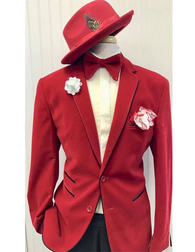 Two Button Single Breasted Notch Lapel One Chest Pocket Ticket Pocket Two Flap Front Pockets Color: Red SKU#JA1920
