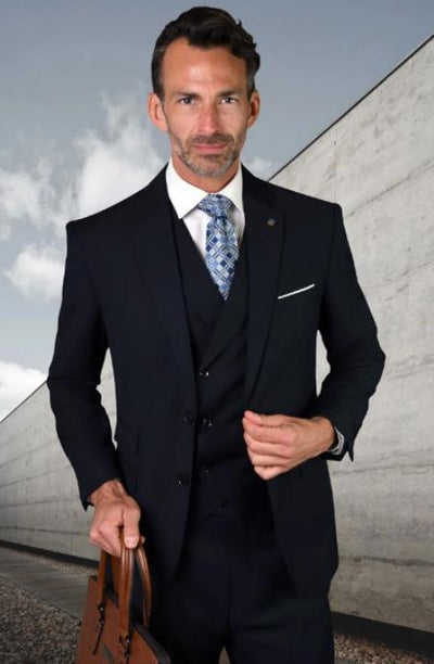 View full details3 Button Solid Fashion Suit With Vest Milano men's Church Suit Classic Fit Pleated Pants