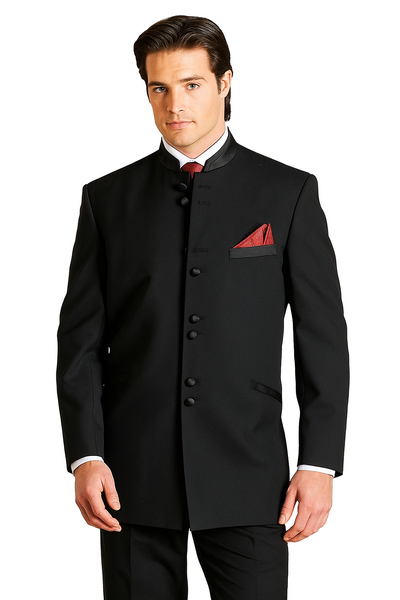 View full detailsRare Black Mandarin Collar Suit (Jacket and Pants) Perfect for Social event Wrinkle Free! No ironing needed! Cotton/Microfiber/Linen Imported!