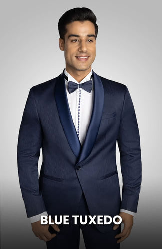 1 Button Single Breasted Tuxedo Slim Fit Shawl Lapel Front Besom Pockets Color: Cobalt Blue,Indigo,Teal SKU#SM1182