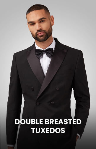 View full detailsModern Fit Black 2-Piece Double Breasted Tuxedo β Peak Lapel with Oversized Bow Tie Step into sophistication with the Modern Fit Black 2-Piece Doub...