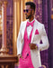 White and Hot Pink Tuxedo Wedding Suit - White Dinner Jacket + Vest + Pants + Bow-tie