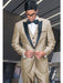 Tan ~ Beige ~ Sand Color Peak Lapel Tuxedo Vested 3 Piece Suit By Alberto Nardoni Tux Formalwear Tan Tuxedo - Beige Tuxedo
