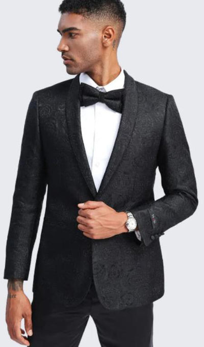 View full details1 Button Single Breasted Shawl Lapel Solid Pattern Slim Fit Matching Bow Tie Floral Front Type Fully lining Interior Pic-Stitching Interior French ...