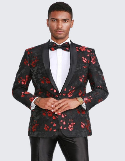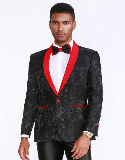 View full details1 Button Shawl Label Single Breasted Floral Paisley Pattern Slim Fit One Chest Pocket Two Flap Front Pockets Color: Red