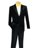 2-Buttons Single Breasted Satin Notch Lapel One Chest Pocket Flap Front Pockets Velvet Material Side Vents Flat Front Pants Color: Black SKU#CH70