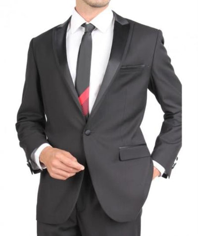 One Button Peak Framed Lapel Slim Fit Tuxedo Color: Black SKU#RA40