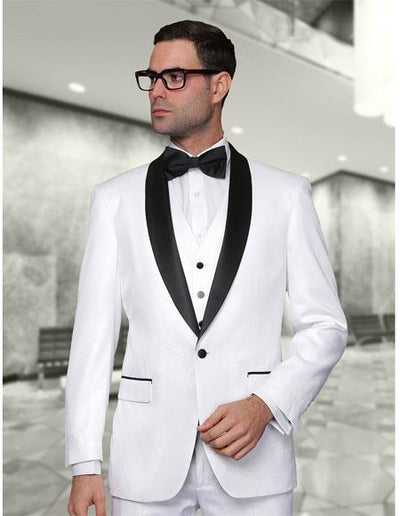 Shawl Lapel 1 Button Flap Front Pockets One Chest Pocket Modern Fit Color: White SKU#GD1105