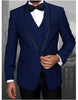 Trimmed Shawl Lapel Buttons Closure One Chest Pocket Front Flap Pockets Modern Fit Suits Material: Wool Color: Sapphire Blue SKU#GD1102