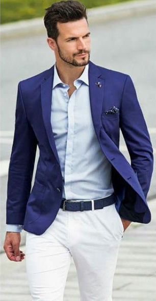 Two Button Single Breasted Peak Lapel One Chest Pocket Flap Front Pockets Front Ticket Pocket Flat Front Pants Color : Blue SKU#EK597