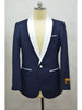 One Button Single Breasted Shawl Lapel One Chest Pocket Flap Two Pockets Four Button Cuff Color: NavyBlue-White