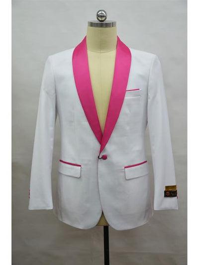 One Button Single Breasted Shawl Label Two Flat Front Pockets One Chest Pocket Color: White SKU#JA1255