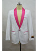 One Button Single Breasted Shawl Lapel One Chest Pocket Flap Two Pockets Color: White-Fuschia