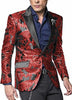 Two Button Single Breasted Peak Lapel Paisley Pattern One Chest Pocket Flap Front Pockets Color: Hot Red