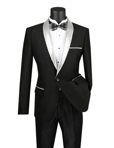 Tazio 1 Button Shawl Collar Slim Fit Silver Blazer SKU#SSRP04