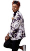 Button Closure Single Breasted Paisley or Floral Pattern One Chest Pocket Two Flap Front Pockets Color: White and Purple