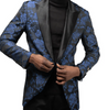 1 Button Peak Lapel Single Breasted Paisley Pattern One Chest Pocket Two Flap Front Pockets Color: Royal Blue - Indigo