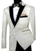 2 Button Jacket Side Vents Peak Lapel Floral Pattern Wool Feel Color: Ivory