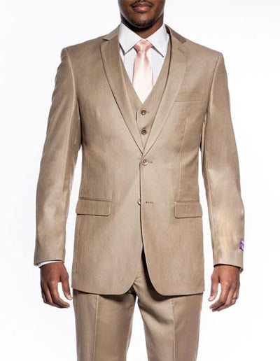 2-Button Vested Suit Skinny Lapel Siut 3 Pieces 3PC Slim Fitted Cut Color: Tan