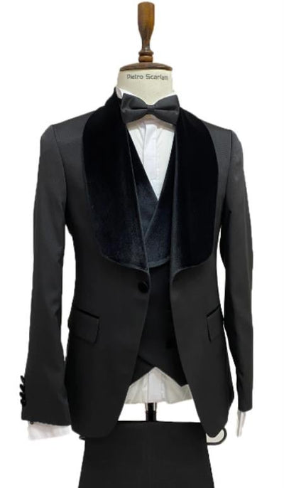 View full details1 Button Shawl Lapel Single Breasted Double Breasted Vest Modern Fit Flat Front Pants One Chest Pocket Two Flap Front Pocket Colour: Black SKU#JA56...