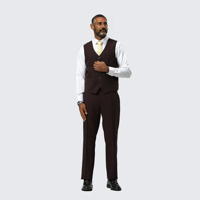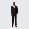 View full detailsMens brown skinny fit three piece suit with peak lapel. High end suit by Stacy Adams. Glen Check design. This suit is made of a luxurious rayon vis...