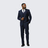 View full detailsMens navy skinny fit three piece suit with peak lapel. High end suit by Stacy Adams. Glen Check design. This suit is made of a luxurious rayon visc...