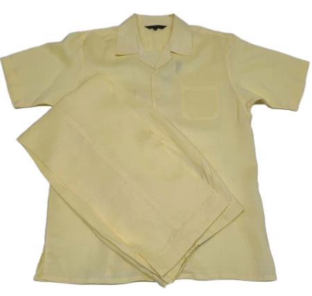 Mens Linen Walking Suit - "Yellow" Summer Outfit Color: Yellow Mens Linen Suit SKU#JA57330