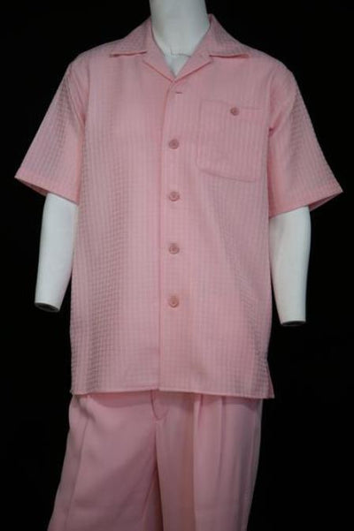 Button Fastening Left Side Pocket Point Collar 2pc Shirt and Pants Vintage Grid Short Sleeve Color: Blush SKU#JA159