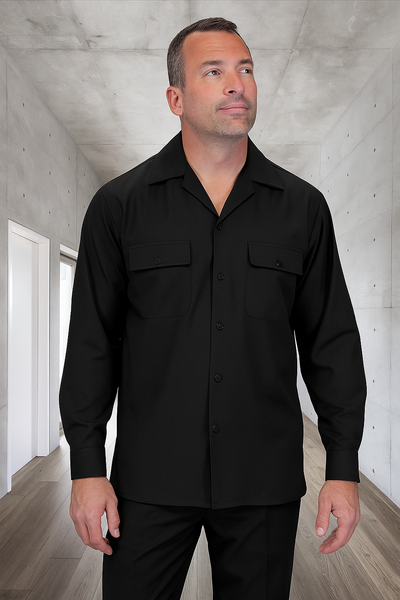 Standard Length Long Sleeve Button Closure Collar Flat Front Pants Cuffed 34 inch Inseam 100% Polyester Color : Black and Brown