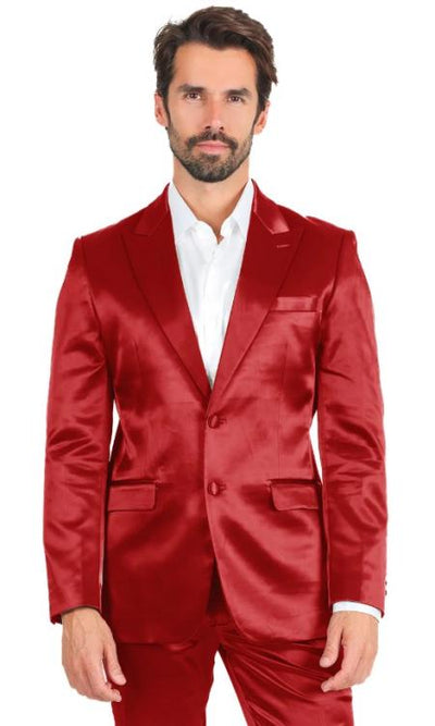 Two-Button Single Breasted Peak Lapel Solid Pattern Slim Fit Material: Satin Jacket Cut: Double-Breasted One Chest Pocket Two Flap Front Pockets Co...