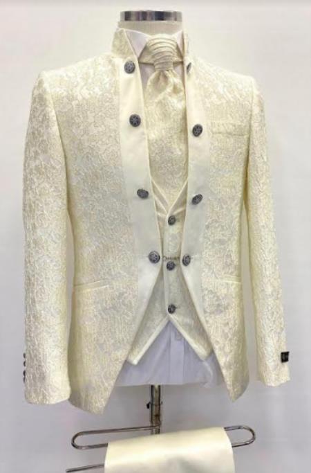 1 Button Single Breasted Shawl Lapel One Chest Pocket Besom Pocket Color: Cream ~ Ivory ~ Off White SKU#JA7620