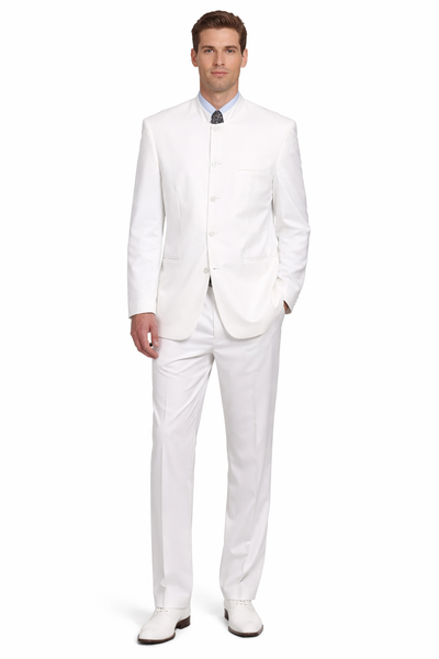 One Button Single Breasted Shawl Label Two Flat Front Pockets One Chest Pocket Color: White SKU#JA1255