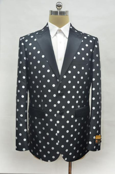 Two Button Single Breasted Notch Lapel Polka Dot Color: Black and White SKU#J53795