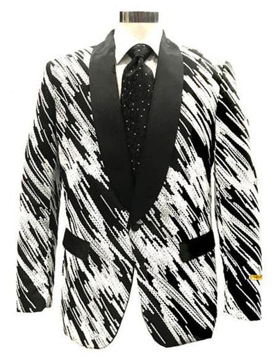 One Button Single Breasted Shawl Lapel Floral ~ Dot Pattern One Chest Pocket Flap Two Pockets Color: White SKU#MO665