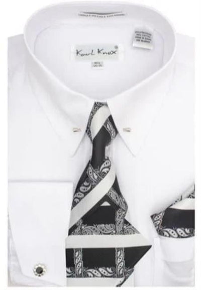 View full detailsKarl Knox Men's French Cuff Shirt Set - Two Tone Tie Two Tone Tie French Cuff Dress Shirt Tie Hanky Cuff Links 65% Polyester 35% Cotton Color: White
