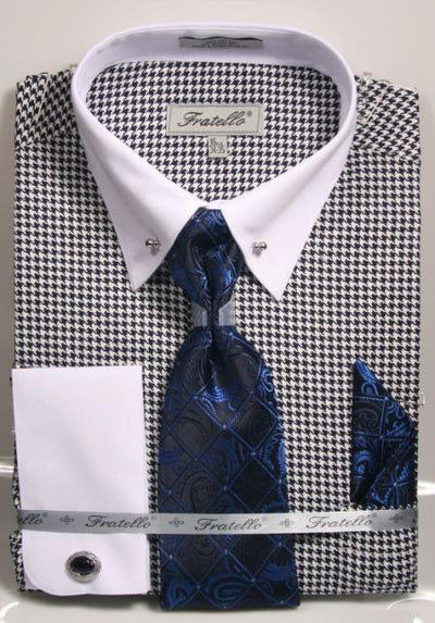 View full detailsFratello Men's 100% Cotton French Cuff Dress Shirt Set - Varied Patterns w/ Collar Bar Varied Patterns French Cuff Dress Shirt Collar Bar Tie Hanky...