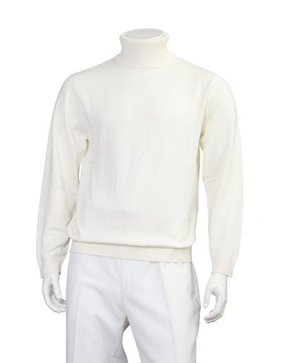 Long Sleeve Knitted Style Sweater Type Solid Pattern Regular Size Type Turtleneck Neckline Material: Cotton with Acrylic Color: White