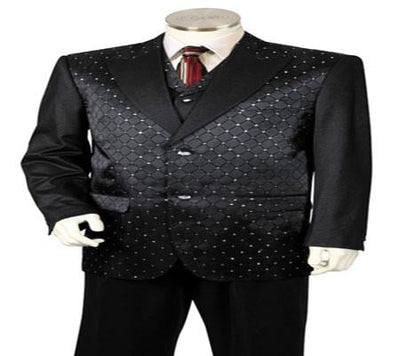 Suit Jacket: Black and white color suit luxury two piece suit set high quality shiny material Self-Flap pocket one on each sides One chest pocket T...
