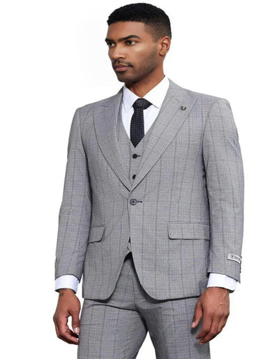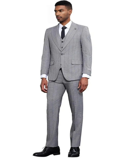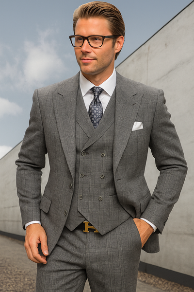 Plaid Suits Vested Suits Statement Suits Vested Suits Wool suits Suits with Double Breasted Vest Windowpane Suits Color: Gray