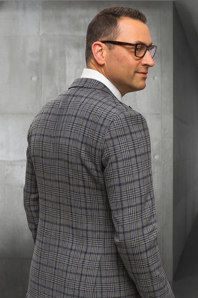 View full details2 Buttons Single Breasted Notch Lapel Classic Fit Glen Plaid With Blue Windowpane One Chest Pocket Flap Front Pockets Dual Side Vents Material : Wo...