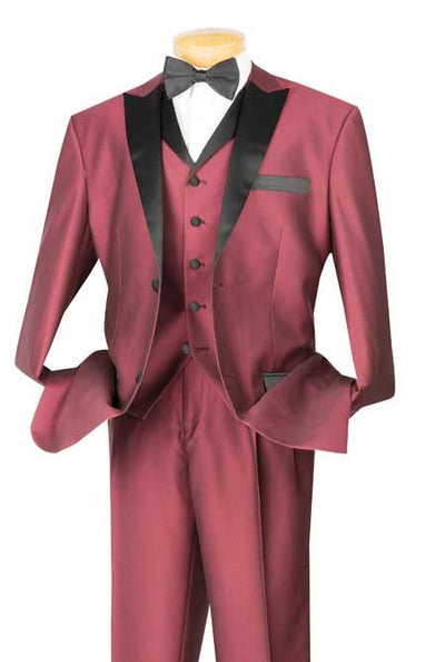 View full detailsOne Button Peak Framed Lapel Slim Fit Tuxedo Color: Burgundy SKU#RA91