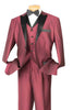 Three Piece Single Breasted Suit Vested Tuxedo Peaked Collar 2 Button Closure Pleated Pants Flap Front Pockets Color: Wine SKU#SM1329