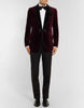 View full details2 Button Burgundy Velvet Jacket. Shawl Lapel Center Vent Slim Fit Color: Burgundy SKU#MK635