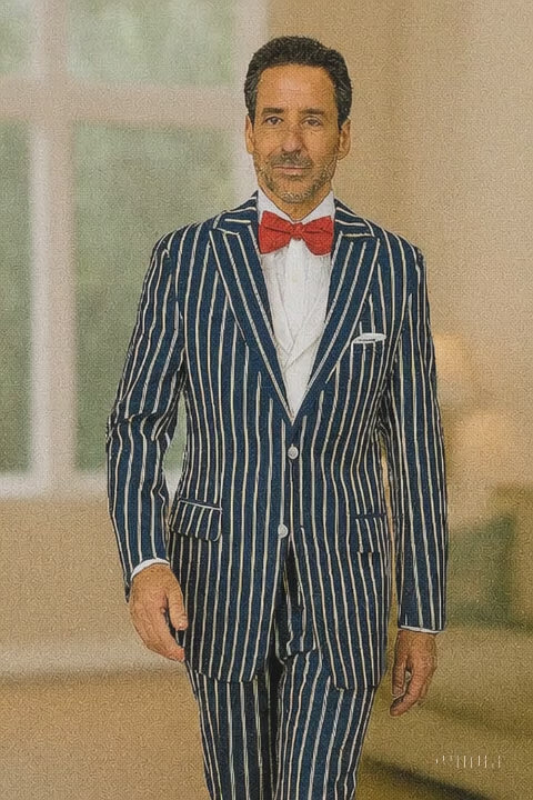 1920s Mens Vested Bold Gangster Pinstripe Suit in Navy