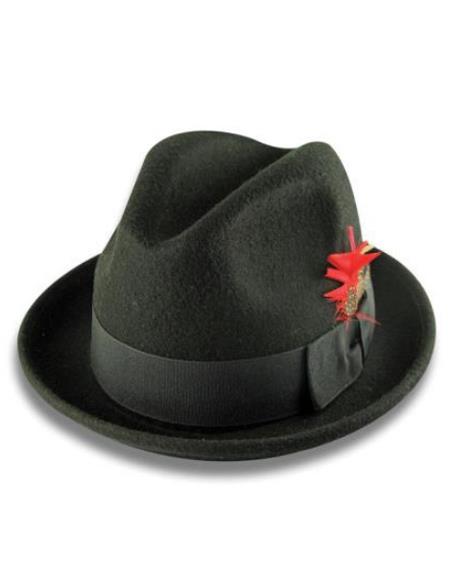 • Stylish fedora trilby khaki mobster hat features 12-Ligne grosgrain trim with feather accent This Fedora hat is made of top quality high breed