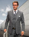Athletic Suit - Classic Fit Charcoal Grey Windowpane - Plaid Suit Classic Fit Wide Leg Pleated Pants Super 150's Wool Fabric