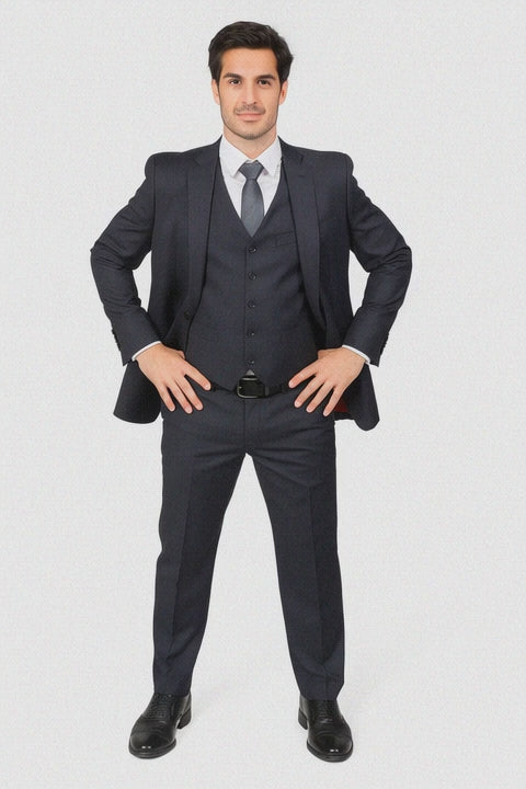 The trousers complete the suit with a flat front design, which delivers a sleek and modern profile. Tailored for a regular fit, they provide comfort while maintaining a polished, elegant line. The fabric drapes naturally, ensuring that the pants look sharp from morning meetings to late evening events. The versatility of black trousers makes them not only a complement to the jacket and vest but also a useful piece to mix and match with other items in your wardrobe. Whether paired with the full three-piece ensemble or worn more casually with just the jacket, these trousers provide the flexibility every modern gentleman needs.