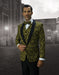 1 Button Tuxed with satin shawl lapel, floral print jacket and vest, and solid black pants.
