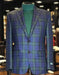 Big and Tall Plait Sport Coat - Windowpane Checkered Scottish English Pattern Party Blazer in Color Green and Blue Tartan