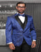 Big and Tall Size Tuxedo Dinner Jacket - Paisley Fabric Blazer in Color Royal Blue